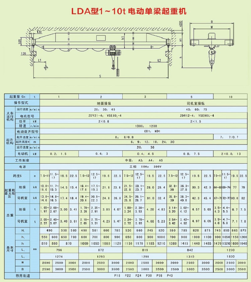 LH型5t、10t、16t電動葫蘆橋式起重機